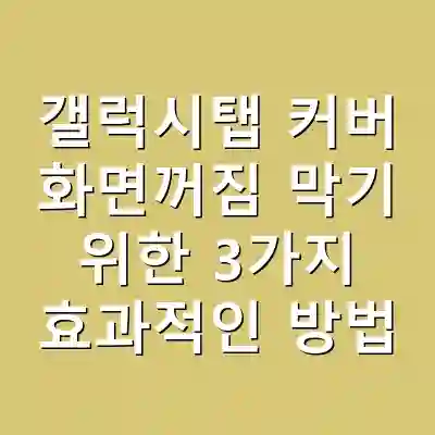 갤럭시탭을 이용하는 사용자들 사이에서 화면 꺼짐 문제는 자주 발생하는 이슈입니다. 특히, 커버를 사용하고 있을 때 이 문제가 더욱 두드러지죠. 이 글에서는 갤럭시탭의 화면 꺼짐 현상을 방지할 수 있는 세 가지 실용적인 방법을 소개합니다. 각 방법은 간단하면서도 효과적인 설정을 통해 사용자의 편리한 작업 환경을 유지하는 데 도움을 줄 것입니다. 이 글을 통해 화면 꺼짐 문제를 효율적으로 해결할 수 있는 팁을 얻어보세요.