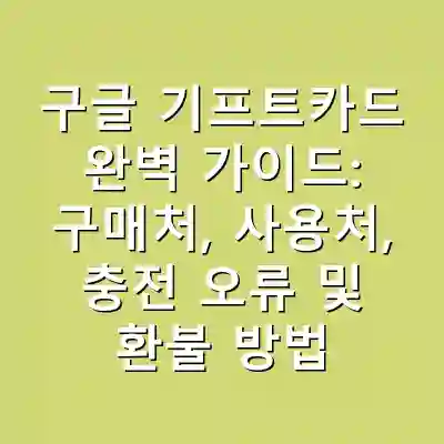 구글 기프트카드는 구글 플레이 스토어에서 다양한 콘텐츠를 구매할 수 있는 선불 카드입니다. 온라인 및 오프라인에서 쉽게 구매할 수 있으며, 사용법도 간단합니다. 충전 오류 해결과 환불 방법도 알아두면 더욱 유용하게 활용 가능합니다.