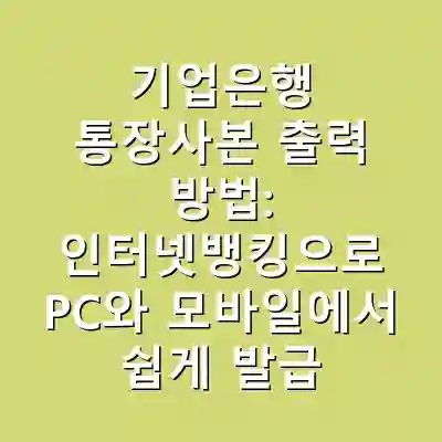 기업은행 통장사본은 온라인으로 간편하게 발급받을 수 있는 중요한 서류입니다. 모바일과 PC에서 각각의 장단점을 고려하여 발급 방법을 선택하면 유용합니다. 이 글을 통해 통장사본 발급을 쉽게 준비하고, 사회생활에서 필요한 서류를 빠르게 마련할 수 있기를 바랍니다.