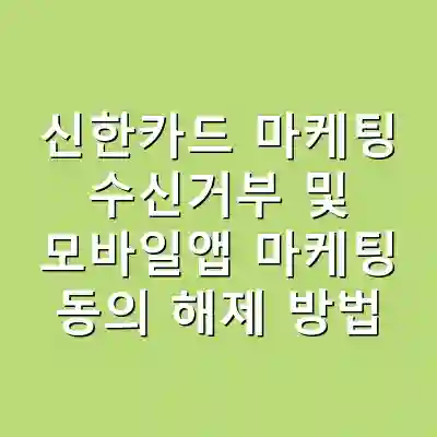 신한카드의 마케팅 수신거부는 사용자가 불필요한 광고 메시지로부터 탈출할 수 있는 방법을 제공합니다. 많은 사용자가 자신도 모르게 마케팅 동의를 하여 수신하는 메시지를 불편하게 느끼고 있습니다. 이러한 문제를 해결하기 위해 모바일앱에서의 마케팅 동의 해제 방법을 소개합니다. 이 글을 통해 신한카드 마케팅 수신거부 절차와 모바일앱에서의 동의 해제 방법을 구체적으로 알아볼 수 있습니다.